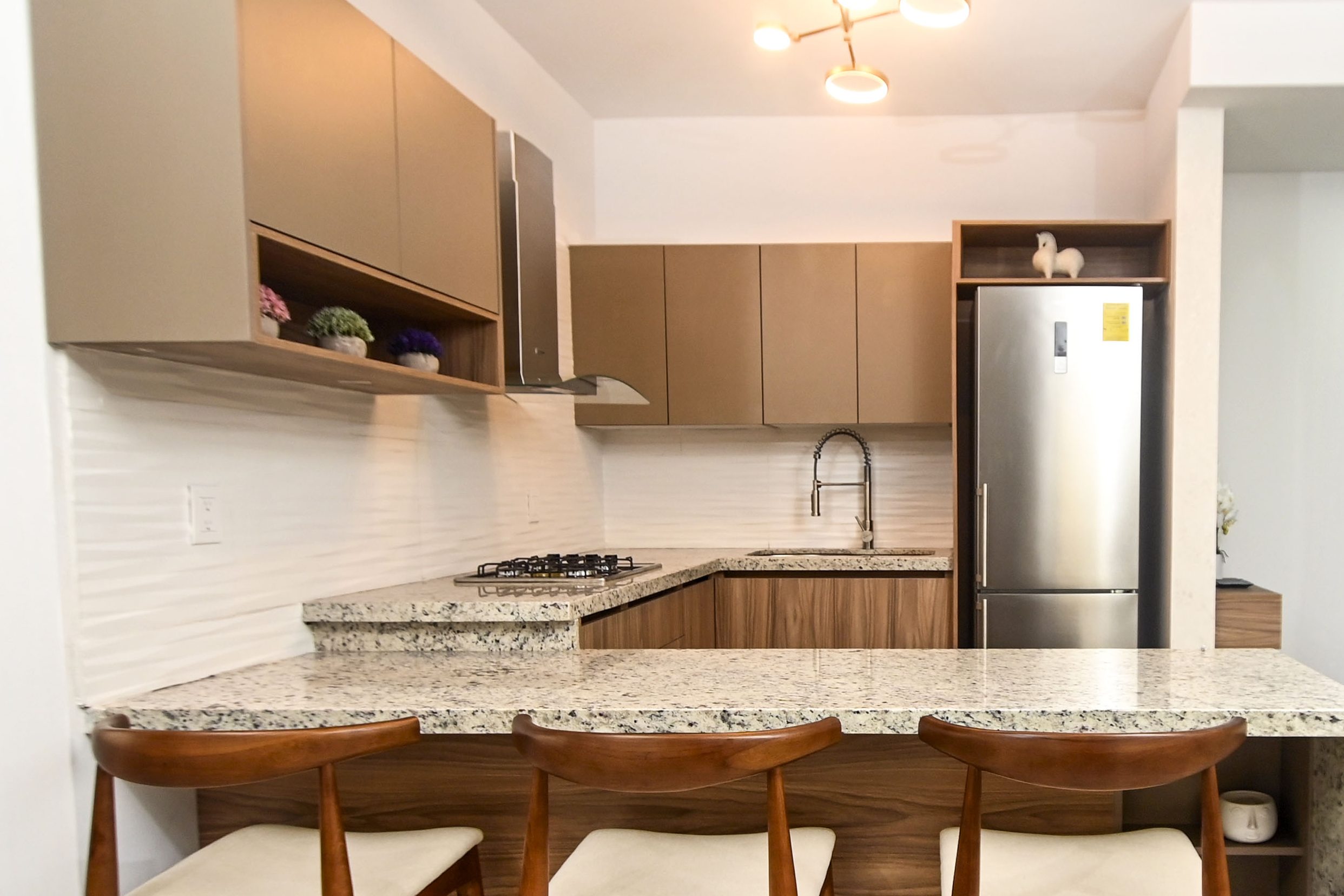 Versatilidad y estilo con acabados de fácil mantenimiento y gran impacto visual.